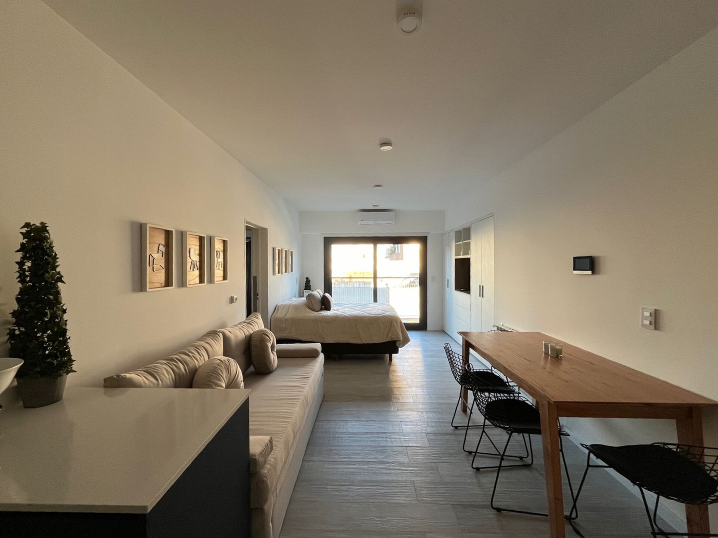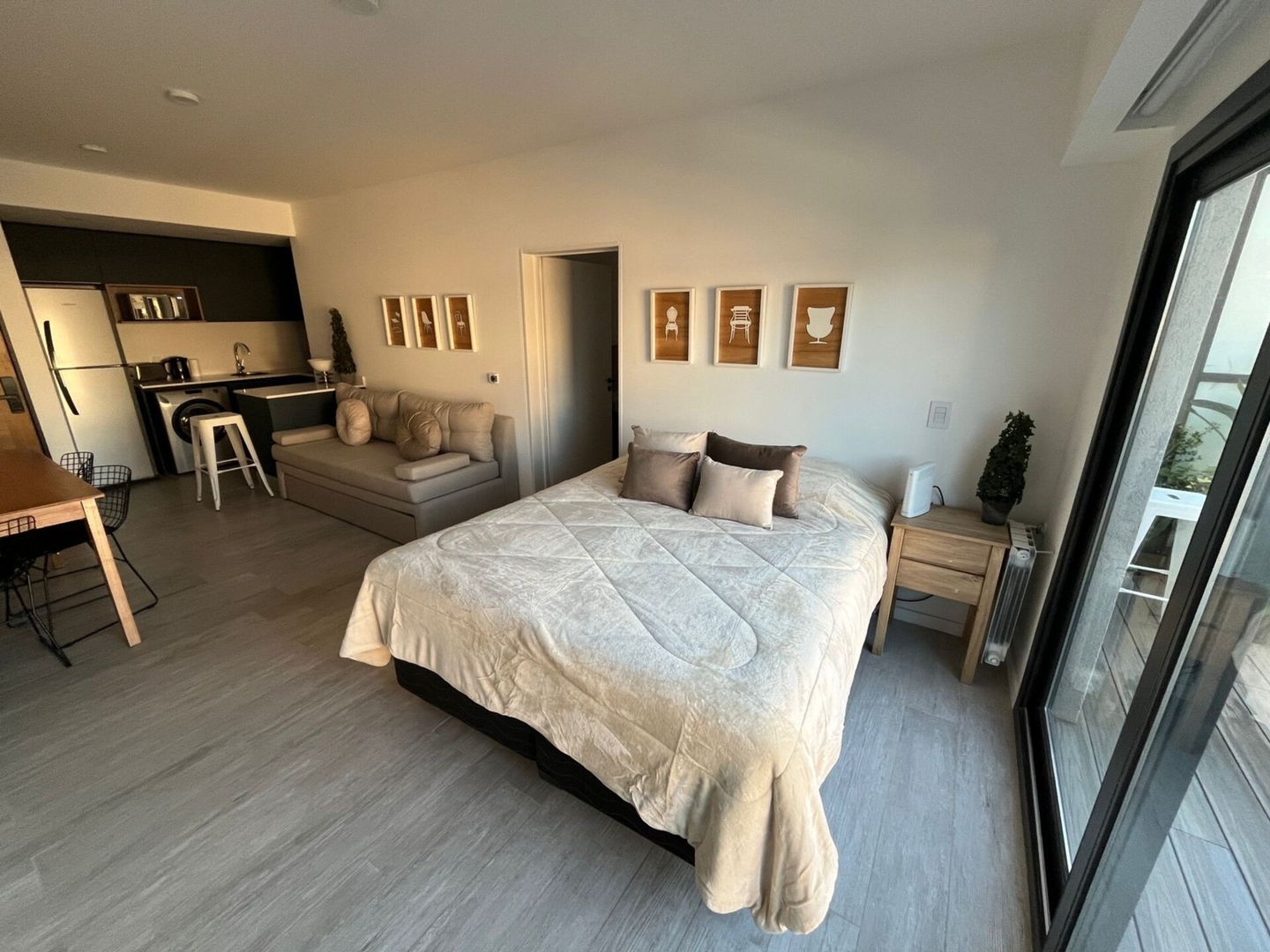 Disfruta esta experiencia única en el corazón de Palermo Hollywood! Este departamento está equipado para estadías de 1 a 4 personas, y el tiempo que sea necesario. El edificio cuenta con tecnología moderna, cerraduras digitales, un espacio de co-work con internet para poder tener reuniones de trabajo, un garage comercial de 3 subsuelos, y un restaurante en planta baja A su vez hay una terraza común con pileta, solárium y parrillas.